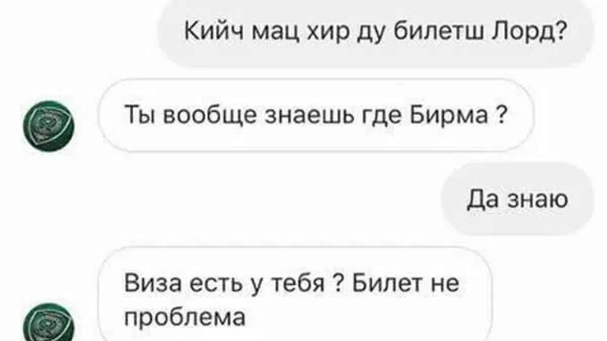 «ВАЛЛАХ1И даю слово любому покупаю билет до ближайшего аэропорта к Бирме, вы только скиньте копию паспорта и дату поездки туда мне в Директ».