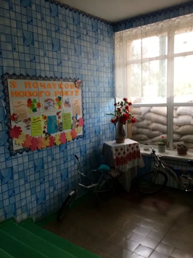 Два года назад, перед 1 сентября, родители по ее команде тащили в школу мешки с песком, матрасы, одеяла, ведра — тушить пожары, закладывать окна, двери, если что… Линейку провели в вестибюле. Учили детей правильно прятаться при обстрелах. Позже Пащенко, материально ответственное лицо, по ночам дежурила в опустевшем здании вместе со сторожем. Мародеров отгоняли, молились, когда бабахало рядом.