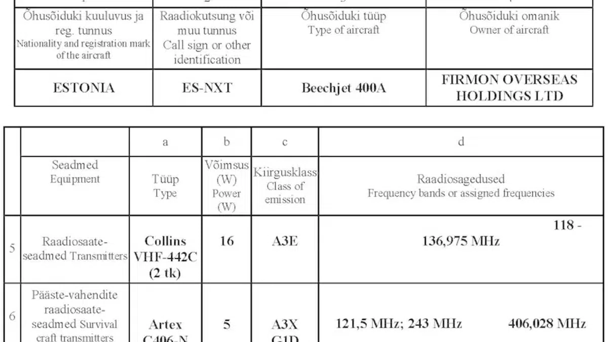 «Новая газета» выяснила, что лицензия на радиостанцию воздушного судна Beechjet 400A бортовой номер ES-NXT действовала с 2014 года и продлена до начала 2017 года. Все это время самолетом владела офшорная фирма Firmon Overseas Holdings, зарегистрированная на Британских Виргинских островах.
