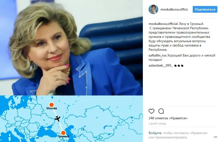 Неоднократно в течение пресс-конференции в Грозном Татьяна Николаевна подчеркивала, что и впредь будет внимательно контролировать ход расследования: «Такое право у Уполноченного есть в соответствии с федеральным законом, и я намерена им воспользоваться». Кроме того, не стоит забывать и о том, что это именно Татьяна Москалькова сообщила президенту Путину о массовых нарушениях прав человека — в прямом эфире, на одном из центральных каналов.