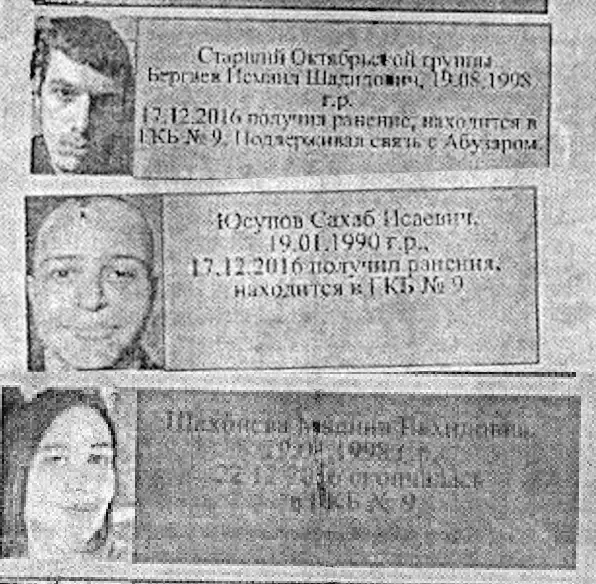 Теперь, после публикации списка «Новой газеты», в котором фигурировали Бергаев и Юсупов, был, наконец, признан факт смерти всех троих (включая Шахбиеву) и озвучена официальная версия о том, что все они якобы еще 20 декабря скончались в ГКБ № 9 в результате полученных ранений.