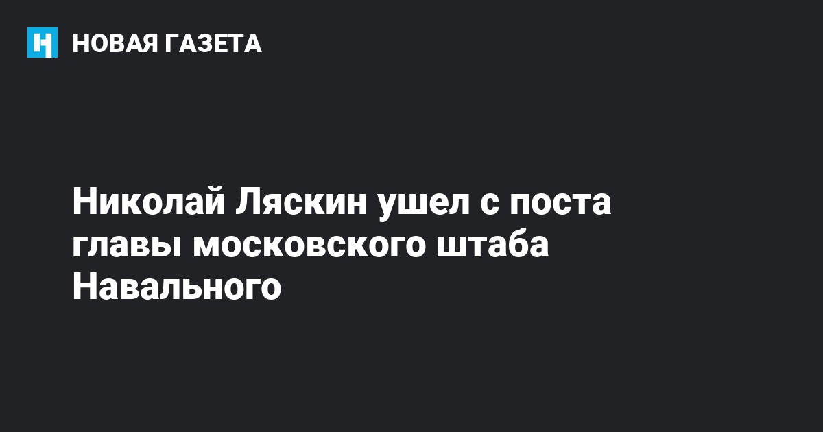 Глава московского штаба политика Алексея Навального Николай Ляскин уходит со своей должности. Об этом он сообщил на своей странице в фейсбуке.