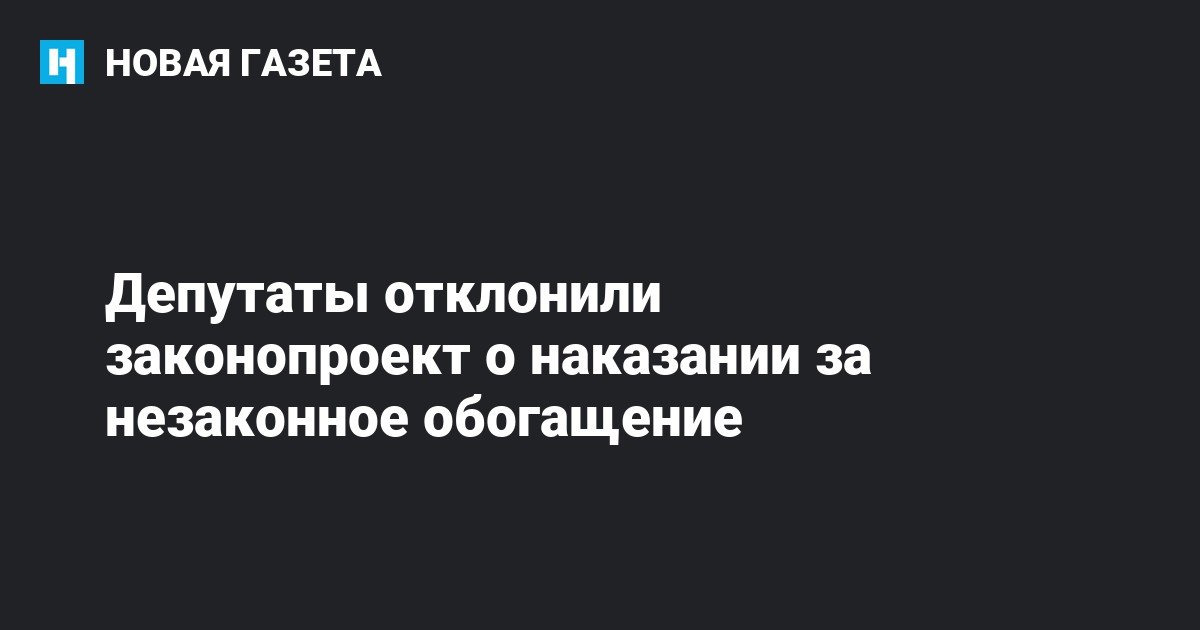 Госдума отклонила в первом чтении законопроект группы депутатов от «Справедливой России», который предлагает внести в Уголовный кодекс статью о незаконном обогащении, сообщил «Новой газете» советник главы партии Сергея Миронова.