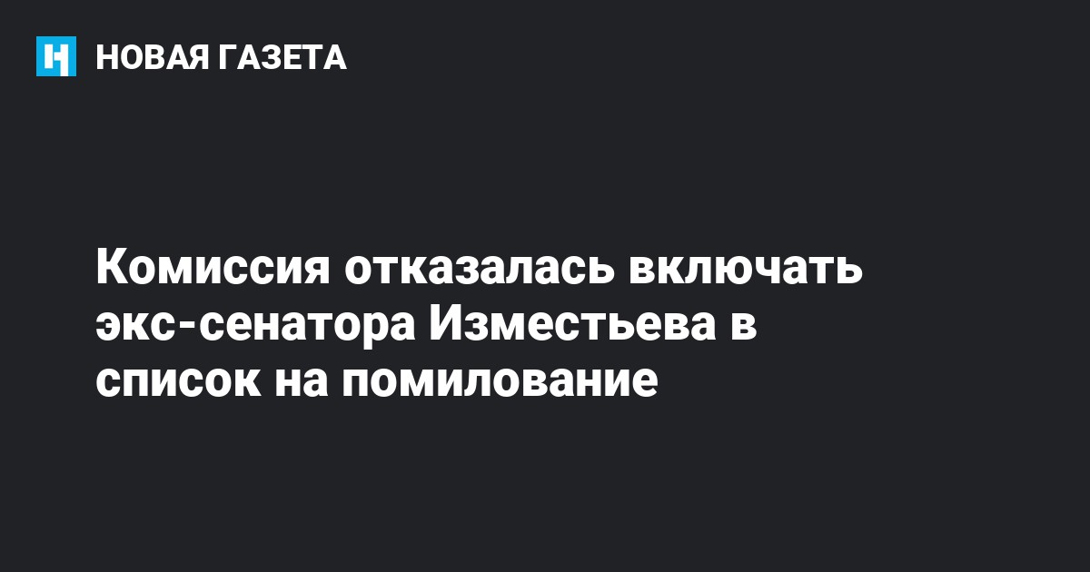 Бывший сенатор от Башкирии Игорь Изместьев не попал в список на помилование. Об этом РИА Новости рассказала заместитель председателя Московская Комиссия по вопросам помилования Мария Каннабих.