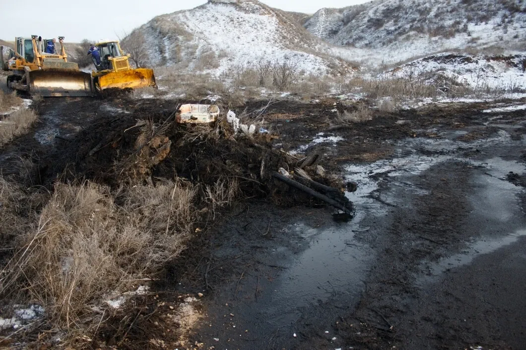 Красноармейское находится в низине на берегу Волги. Нефтепровод — на возвышенности в полукилометре от села. В первую очередь «черное золото» потекло в самую бедную часть деревни, где стоят двухэтажки с туалетами на улице. Дорога (если так можно назвать колеи в мерзлой земле) засыпана свежим желтым песком. Из-под него проступают маслянистые пятна. Мощные импортные экскаваторы с грохотом сгребают загрязненный грунт: его увозят и обещают утилизировать силами «Транснефти».