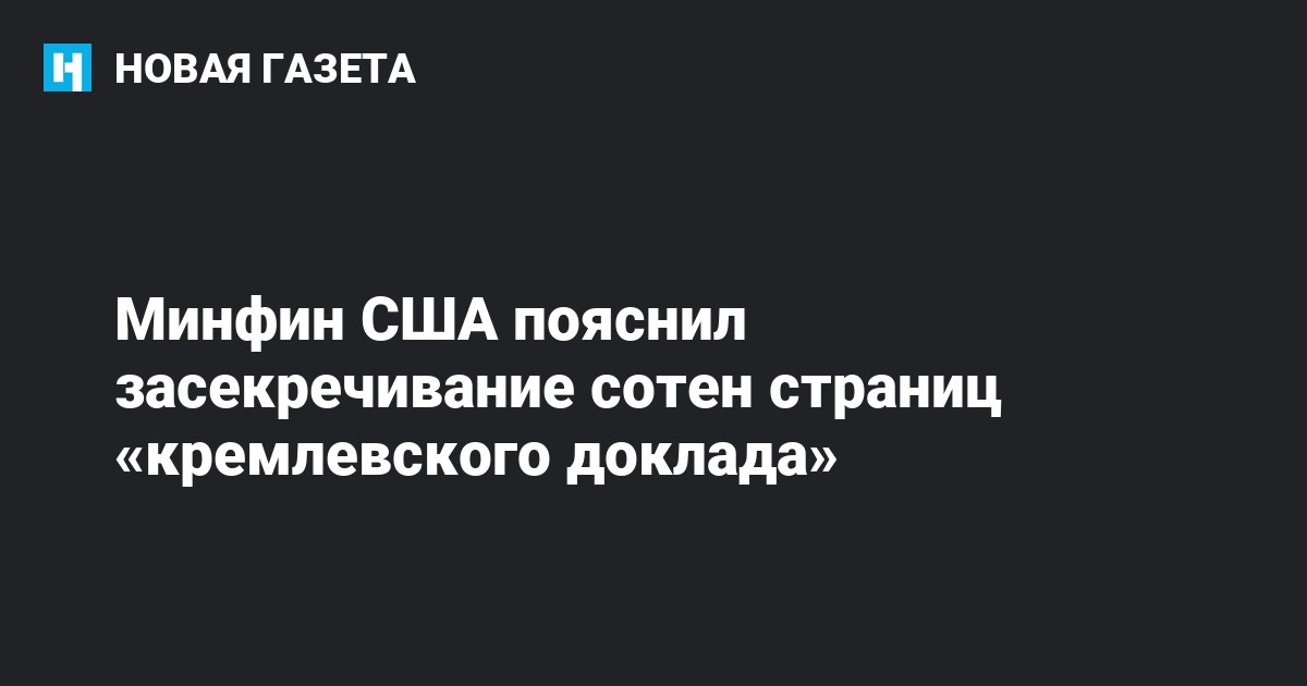 Минфин дважды разъяснял, что этот доклад не является «санкционным» — сначала в публичной версии документа, затем — в разделе «Часто задаваемые вопросы» OFAC. Вместе с тем министр финансов пообещал американским сенаторам, что «санкции, вытекающие из секретной части доклада, будут».