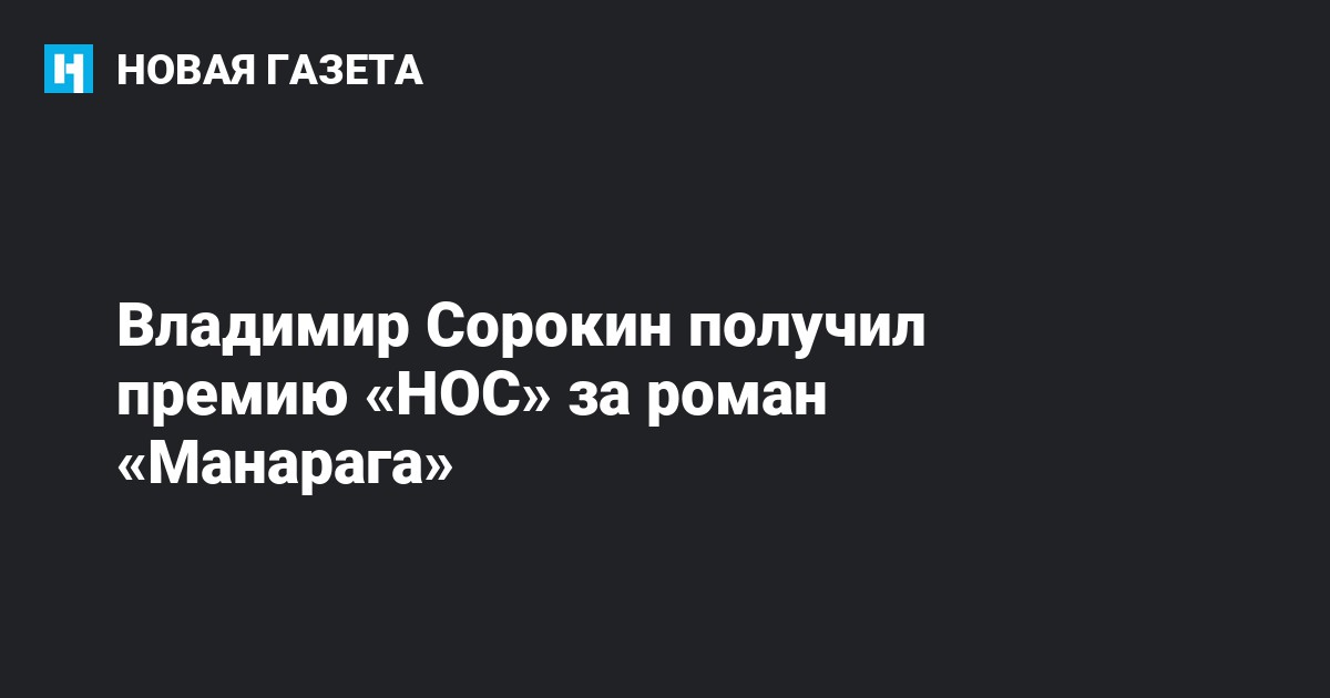 Писатель Владимир Сорокин стал победителем литературной премии «НОС» за роман «Манарага». Трансляция велась на сайте премии.