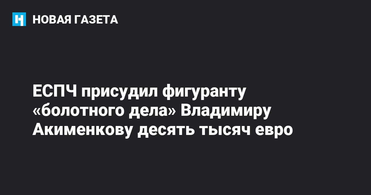 Европейский суд по правам человека присудил фигуранту «болотного дела» Владимиру Акименкову компенсацию в десять тысяч евро, сообщается на сайте суда.