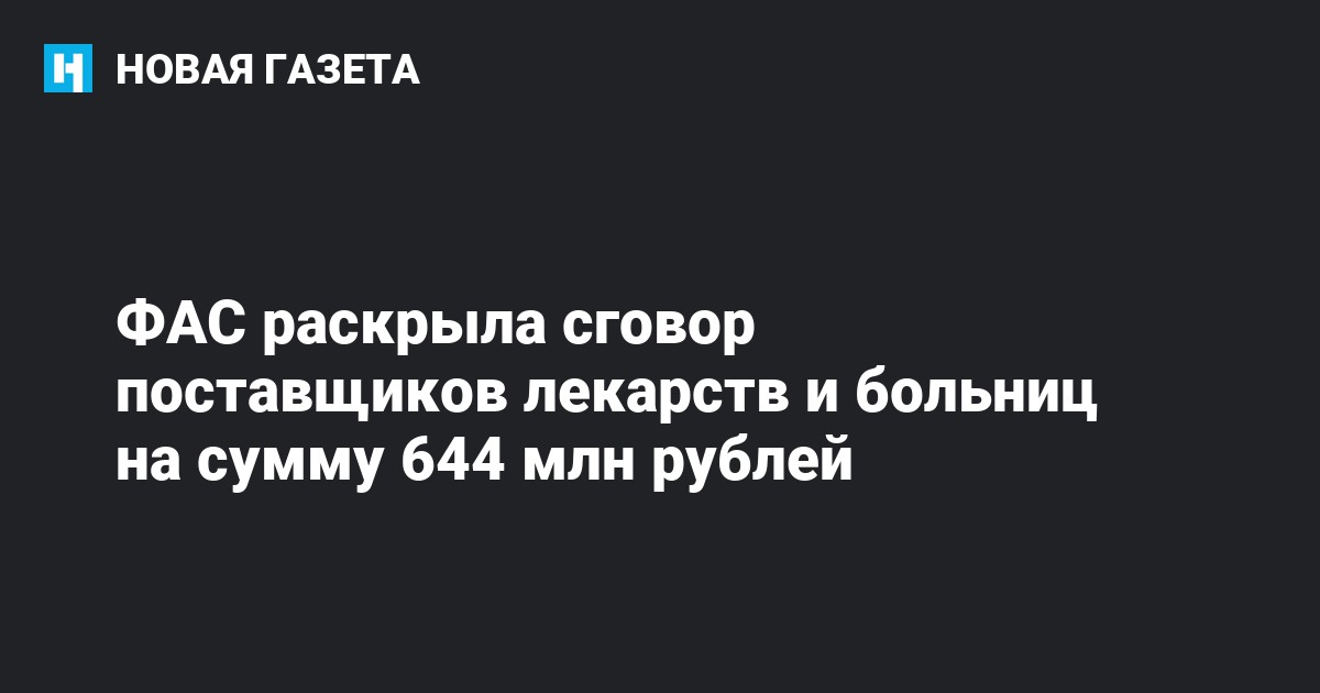 Федеральная антимонопольная служба (ФАС) признала виновными фирмы «Фарм-проект» и «Веста Фарм» в заключении антиконкурентного соглашения с тремя московскими больницами. На сайте ведомства сообщается, что поставщики лекарств не допускали до торгов на аукционах компании, которые не участвовали в соглашении.