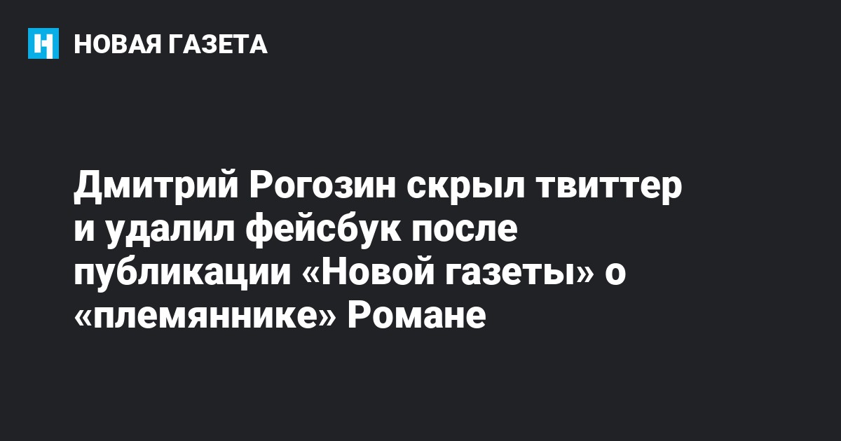 Вице-премьер России Дмитрий Рогозин ограничил доступ к своему аккаунту в твиттере и удалил страницу в фейсбуке. Это произошло после того, как «Новая газета» выпустила расследование о «племяннике» политика.