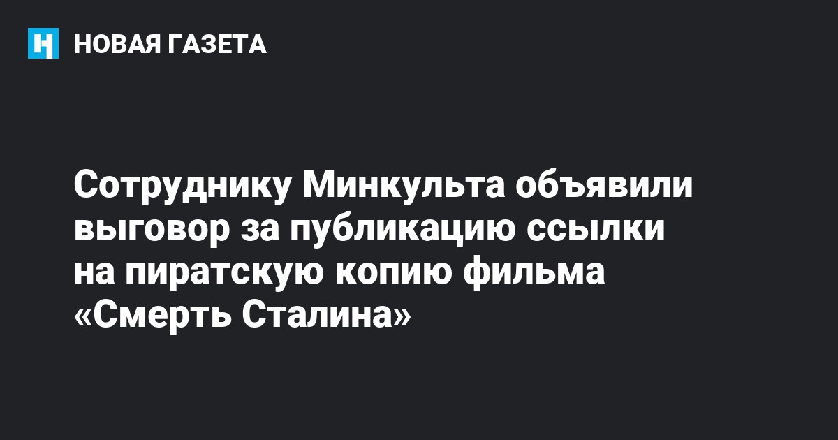 В Министерстве культуры России сообщили, что ссылка на фильм «Смерть Сталина» в социальной сети «Одноклассники» появилась из-за халатности сотрудника ведомства. Об этом сообщает ТАСС со ссылкой на заместителя министра культуры Сергея Обрывалина.