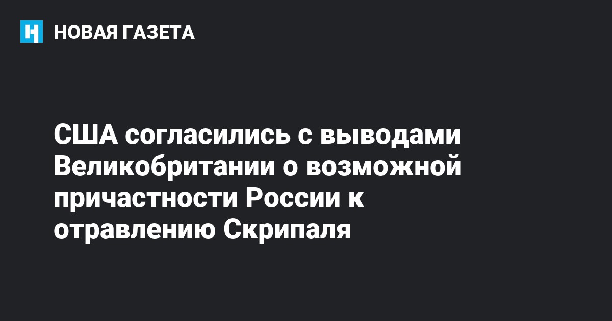 Госсекретарь США Рекс Тиллерсон заявил, что Соединенные Штаты согласны с позицией Великобритании относительно причастности России к покушению на бывшего полковника ГРУ Сергея Скрипаля и его дочь Юлию. Заявление опубликовано на сайте ведомства.
