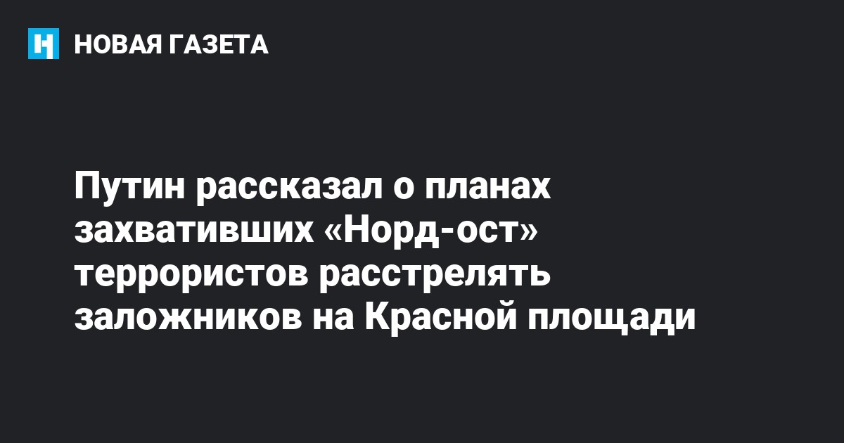 Президент России Владимир Путин рассказал, что террористы, удерживавшие в 2002 году зрителей мюзикла «Норд-ост» в театральном центре на Дубровке, планировали выехать с заложниками на Красную площадь и расстрелять их там. Об этом глава государства сообщил во второй части фильма «Путин» журналиста Андрея Кондрашова, опубликованного в социальных сетях.