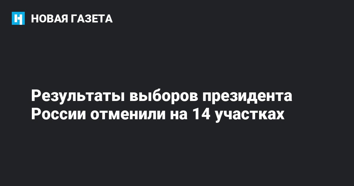 Результаты голосования на выборах президента России, состоявшихся 18 марта, отменены на 13 избирательных участках в девяти регионах страны, а также на одном зарубежном участке, сообщает РИА Новости со ссылкой на замглавы ЦИК России Николая Булаева.
