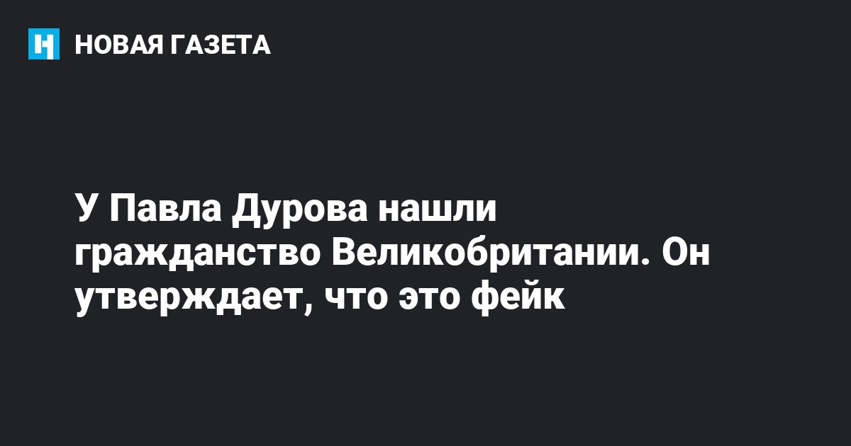В разговоре с TJournal Дуров опроверг получение гражданства Великобритании. Он заявил, что это «фейк».