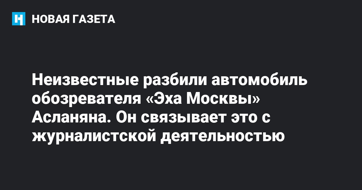 Неизвестные попытались уничтожить автомобиль обозревателя «Эха Москвы», ведущего программы «Гараж» Сергея Асланяна. Об этом «Новой газете» рассказал сам ведущий.