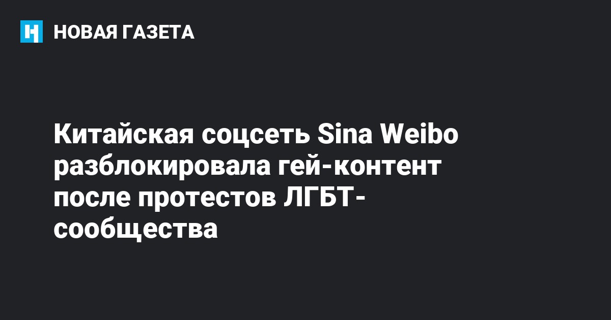 Одна из крупнейших социальных сетей в Китае Sina Weibo, являющаяся гибридом между твиттером и фейсбуком, отменила собственное решение о блокировке контента о гомосексуальности после протестов представителей ЛГБТ-сообщества, сообщает Reuters.