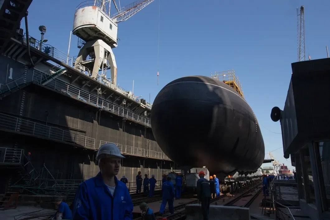 Спуск дизель-электрической подводной лодки «Колпино» проекта 636 «Варшавянка» на «Адмиралтейских верфях» в Санкт-Петербурге. Фото: РИА Новости