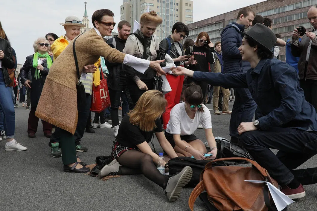 Митингующие раздают бумажные самолётики — символ мессенджера Telegram, который хотел, но не смог заблокировать Роскомнадзор. Фото: Влад Докшин / «Новая газета»