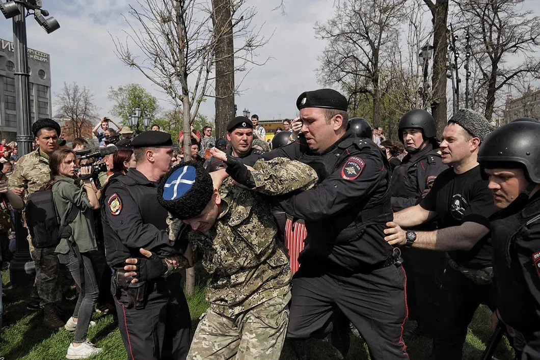По словам нашего источника, казакам сообщили, что их действия якобы согласованы полицией, но когда в ход пошли нагайки, полицейские объяснили наиболее ретивым носителям папах, что они тут не власть и даже не вполне себе ее добровольные помощники. Отсюда и редкие эксцессы с задержаниями людей в камуфляжной форме.