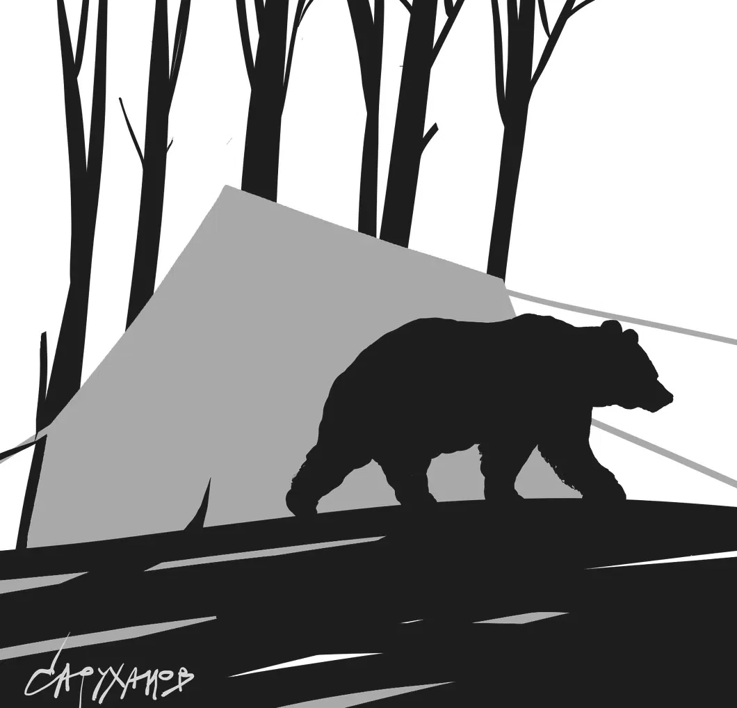 Потерпевший попытался скрыться за валежником, но медведь его преследовал. По данным свидетеля, медведь привстал и ударил потерпевшего лапой, от чего он упал на спину. В это время медведь стал рвать на нем одежду, укусил его за правую ногу, потом за живот. Потерпевший закрыл голову руками…