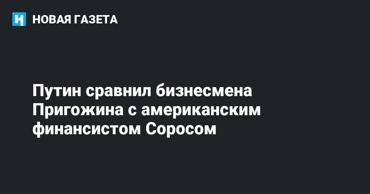 «В Соединенных Штатах есть такой фигурант — господин Сорос, который вмешивается во все дела во всем мире. И мне очень часто наши американские друзья говорят: Америка не имеет к этому отношения как государство. Вот сейчас пошли слухи, что господин Сорос хочет раскачать евро, европейскую валюту», — продолжил Путин. По мнению президента, и в этом случае Госдеп будет отрицать вмешательство Сороса и говорить, что это его личное дело. «А у нас это личное дело господина Пригожина», — заключил он.