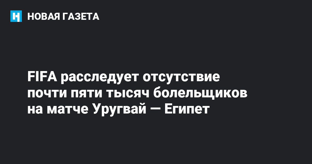 Международная федерация футбола (FIFA) начала расследование из-за того, что на матч между Уругваем и Египтом было продано 32 тысячи 278 билетов, а на стадион пришли только 27 тысяч болельщиков. Об этом сообщает The Daily Telegraph.