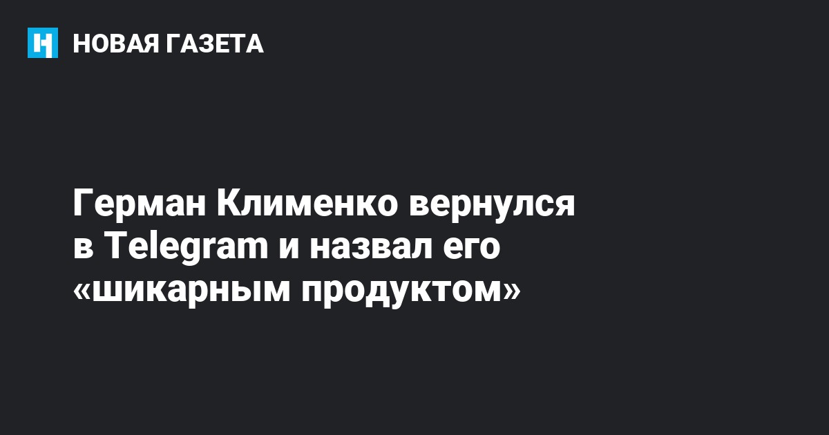 Бывший советник президента России по развитию интернета Герман Клименко вернулся к использованию Telegram, от которого отказался в апреле.
