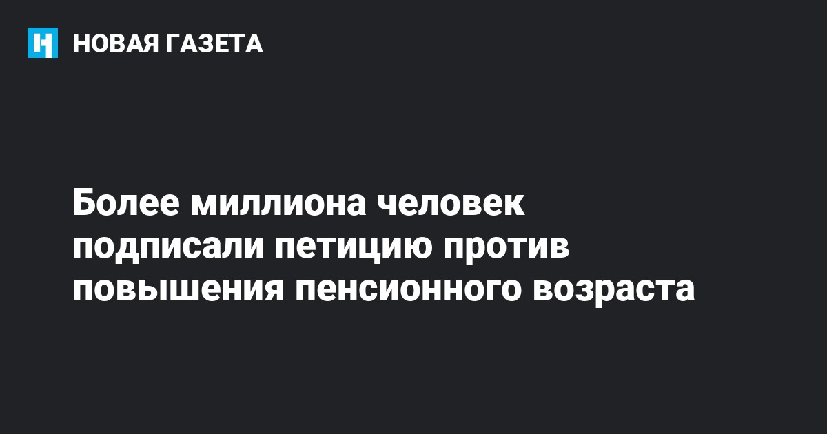 Петицию против повышения пенсионного возраста подписали к этому моменту 1 млн 68 тыс. россиян. Днем ранее было 790 тыс. подписей. Петиция была создана неделю назад.