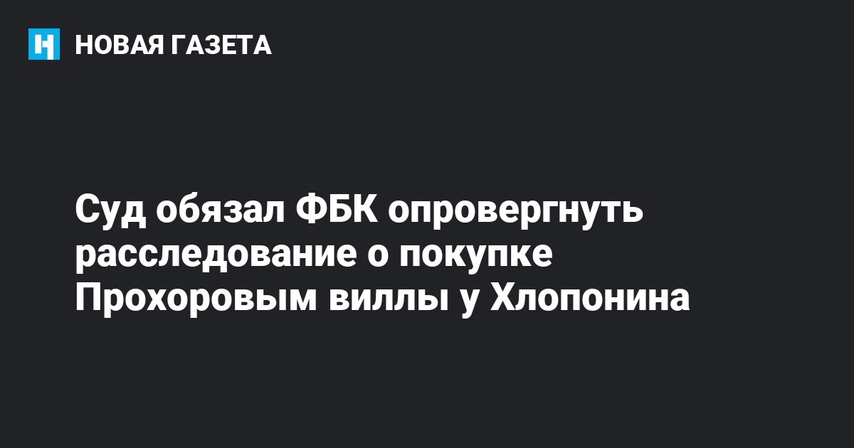 Люблинский районный суд Москвы обязал политика Алексея Навального опровергнуть расследование Фонда борьбы с коррупцией (ФБК) о покупке бизнесменом Михаилом Прохоровым виллы в Италии у бывшего вице-премьера Александра Хлопонина, сообщает RNS.