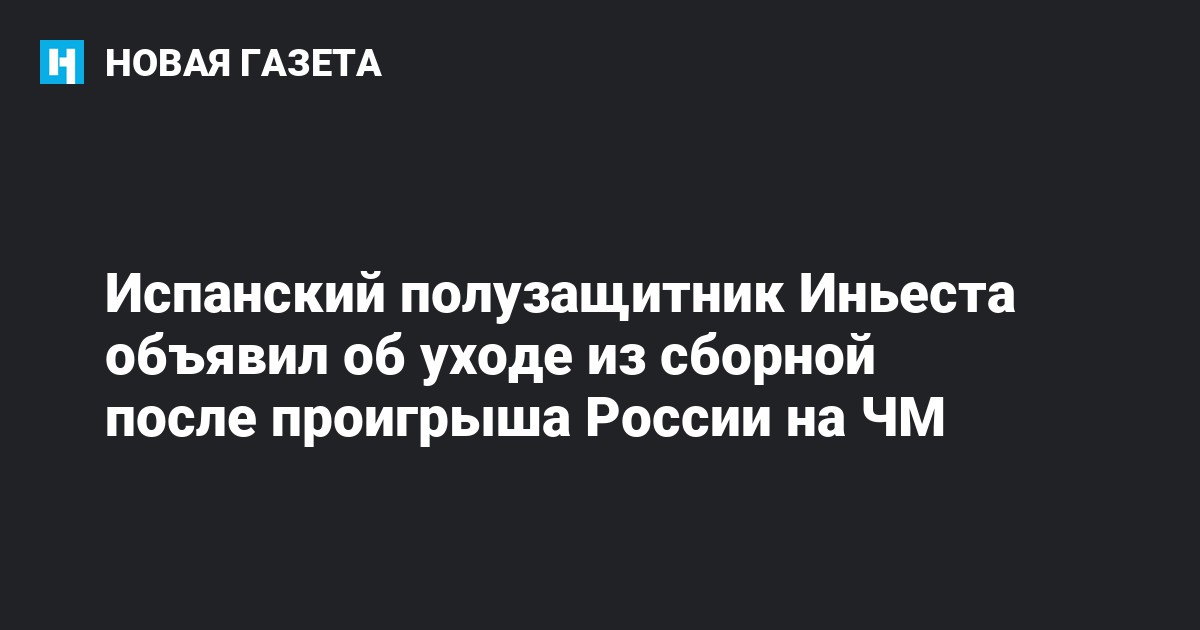 Полузащитник сборной Испании Андрес Иньеста объявил об уходе из национальной команды после ее поражения в матче с Россией в 1/8 финала чемпионата мира по футболу, передает BBC News.