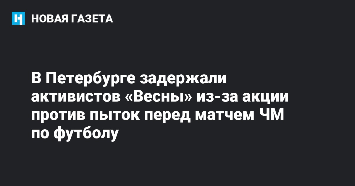 В Санкт-Петербурге полиция задержала четырех активистов оппозиционного движения «Весна», которые устроили акцию против пыток и политических преследований перед матчем Швеция – Швейцария. Об этом сообщает «ОВД-Инфо».