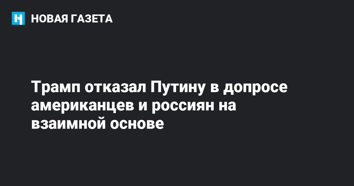 Президент США Дональд Трамп отказался принять предложение Владимира Путина организовать допрос российских граждан, подозреваемых в причастности к вмешательству в выборы в США, в обмен на допрос американцев по делу Уильяма Браудера. Об этом сообщает The Hill со ссылкой на официального представителя президента США Сару Сандерс.