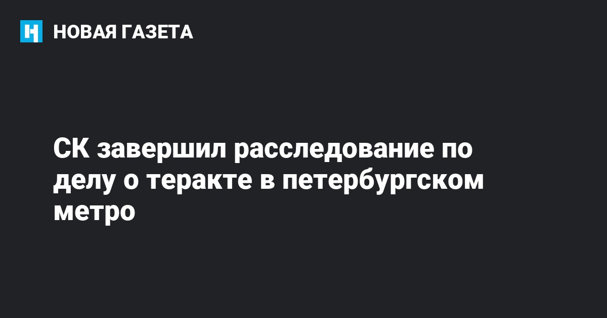 Следственный комитет (СК) завершил предварительное следствие по уголовному делу о теракте в метро Санкт-Петербурга 3 апреля 2017 года на перегоне между станциями «Сенная площадь» и «Технологический Институт-1», сообщается на сайте ведомства. В результате произошедшего погибли 15 человек, пострадали еще 67.