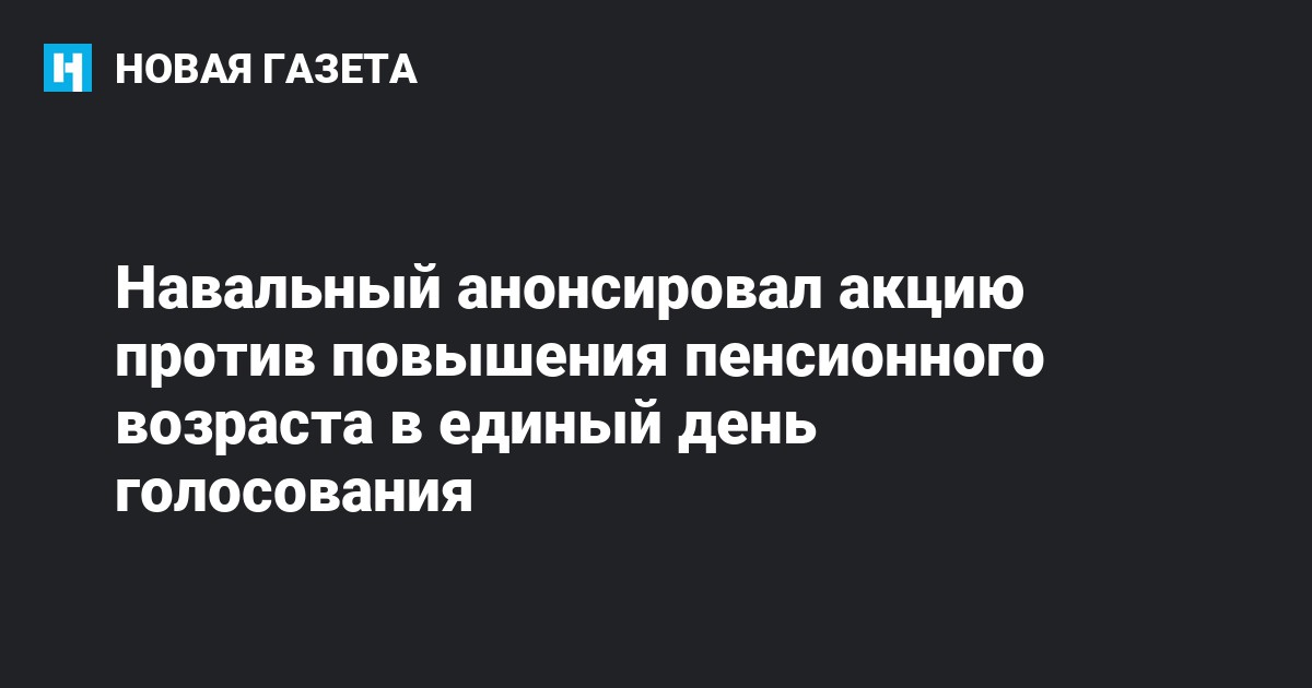 Политик Алексей Навальный анонсировал акцию протеста против повышения пенсионного возраста в единый день голосования, который состоится 9 сентября.