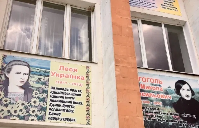 Сейчас последствия взрывов, по крайней мере в центре, в глаза не бросаются. Бросается здание горсовета, украшенное снаружи со всех сторон портретами — Леся Украинка, Николай Гоголь, Степан Бандера.