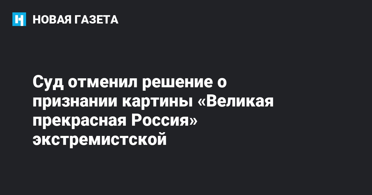 Напомним, Министерство юстиции России внесло картину «Великая прекрасная Россия» в Федеральный список экстремистских материалов в 2016 году на основании решения Октябрьского районного суда Новосибирска.