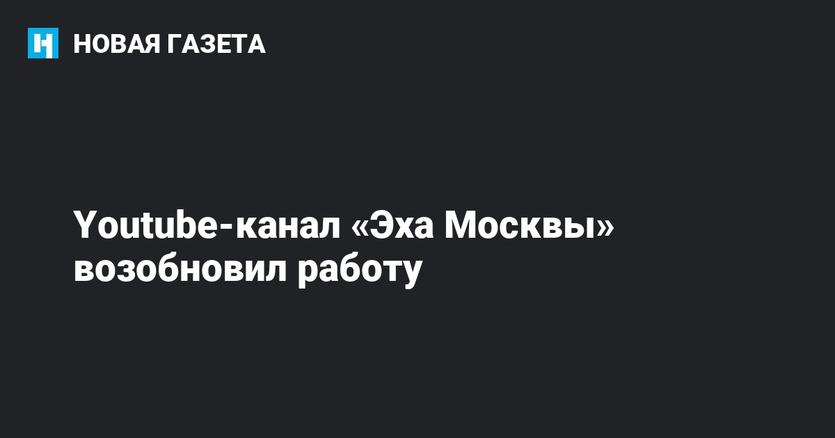 Канал радиостанции «Эхо Москвы» на видеохостинге Youtube возобновил работу, об этом сообщил в своем telegram-канале журналист издания Александр Плющев.