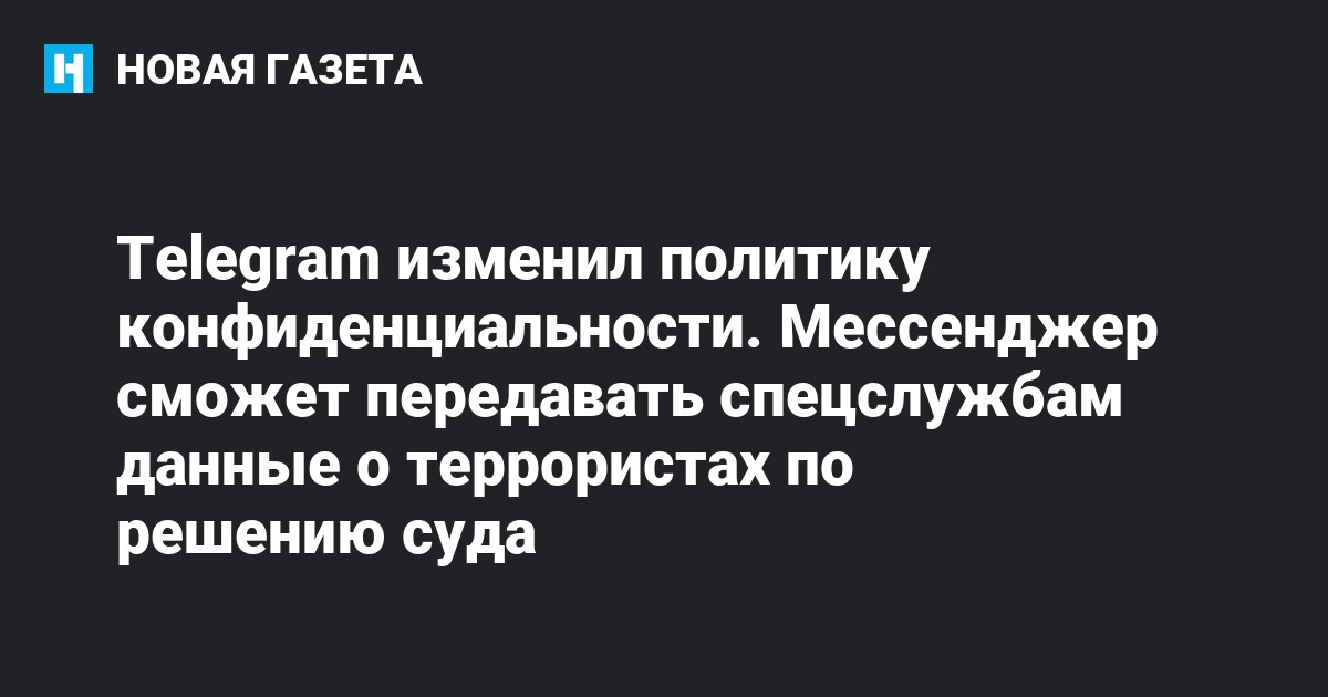 Мессенджер Telegram изменил политику конфиденциальности, добавив туда пункт о возможности передавать спецслужбам информацию о людях, подозреваемых в терроризме, если на это есть соответствующее решение суда.