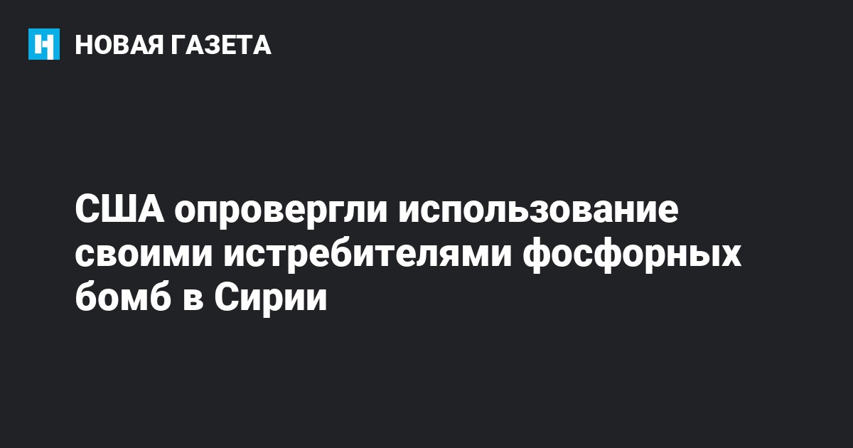 Пентагон опроверг заявления России о применении американскими истребителями в Сирии фосфорных бомб. Об этом сообщает Reuters.