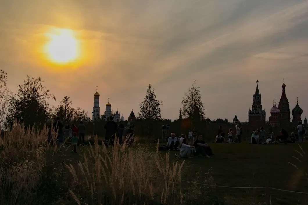 В Зарядье совсем стемнело. Сиял «дом», церкви и девушки на лавочках амфитеатра — головой на мужских коленях, лицом к небу, боком к Кремлю. Выплывали на свет фонарей из мрака полицейские и шары со светодиодами, буянили дети.