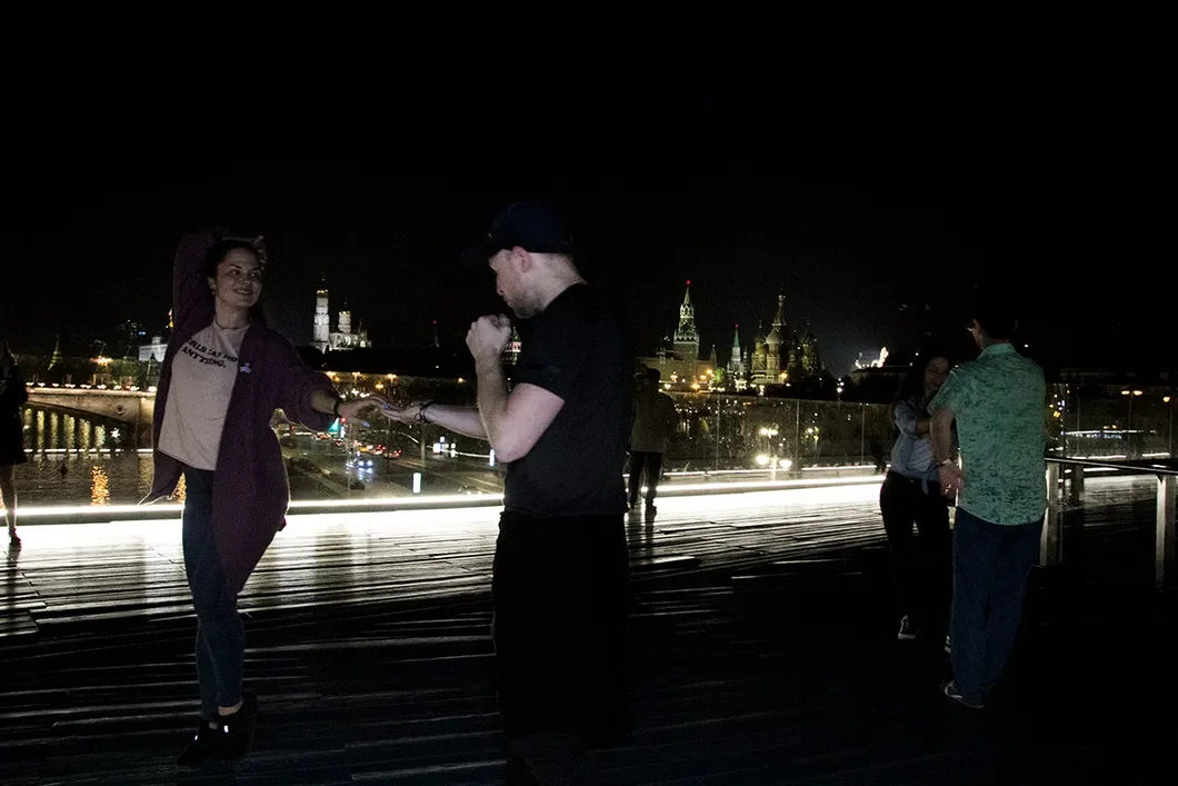 Кубинец Майкл Родригес стал моим на целую бачату. Он кружил меня между огромной матрешкой, парой за сорок, совсем молодыми девчонками со своими парнями, а где-то вдали били куранты кремлевской башни. Анна, Майкл и Ариана приходят сюда почти каждую пятницу и воскресенье — в Парке Горького устраивает только субботний ди-джей. Здесь современная музыка и девочки, которые видят такого вот преподавателя Майкла и записываются в танцкласс, а потом уже как наркотик — каждые выходные в Зарядье. А еще сюда приходят знакомиться мальчики — так говорит Анна.