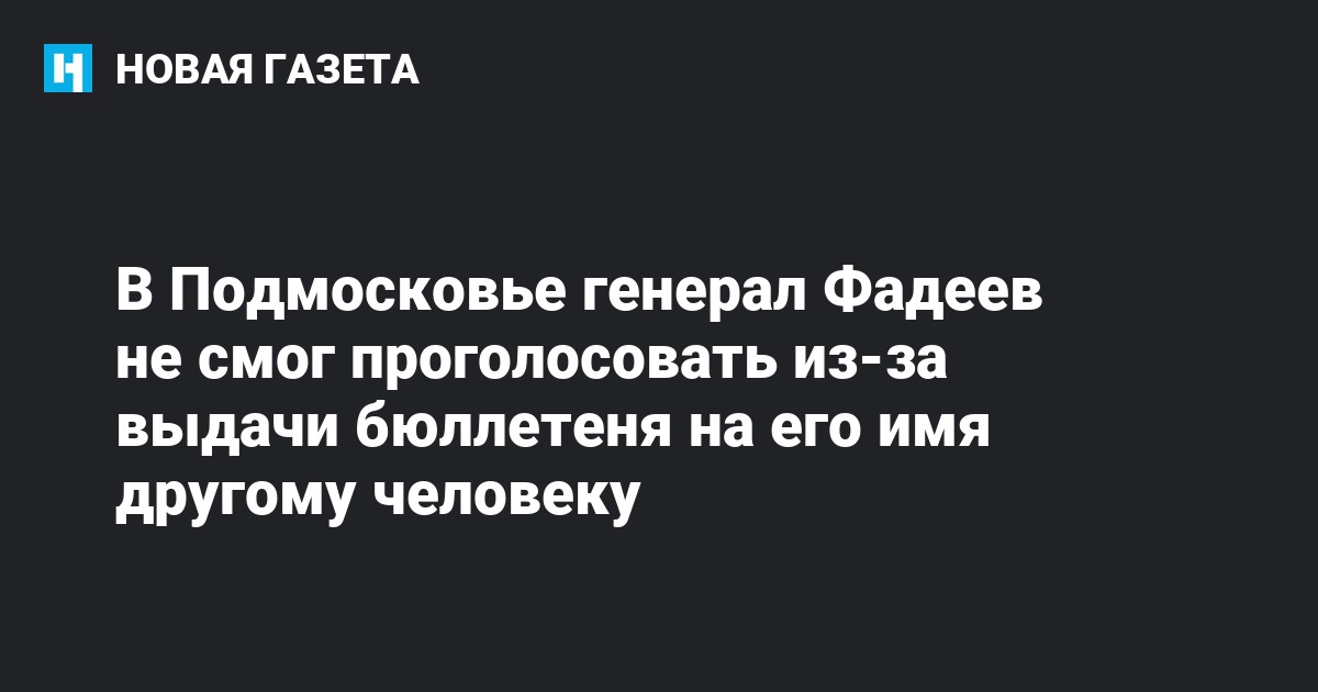 В Подмосковье генерал МВД Борис Фадеев во время выборов 9 сентября пришел на участок и не смог проголосовать, так как в списках было отмечено, что бюллетень на его имя уже был выдан. Об этом «Новой газете» рассказал журналист Андрей Трофимов.