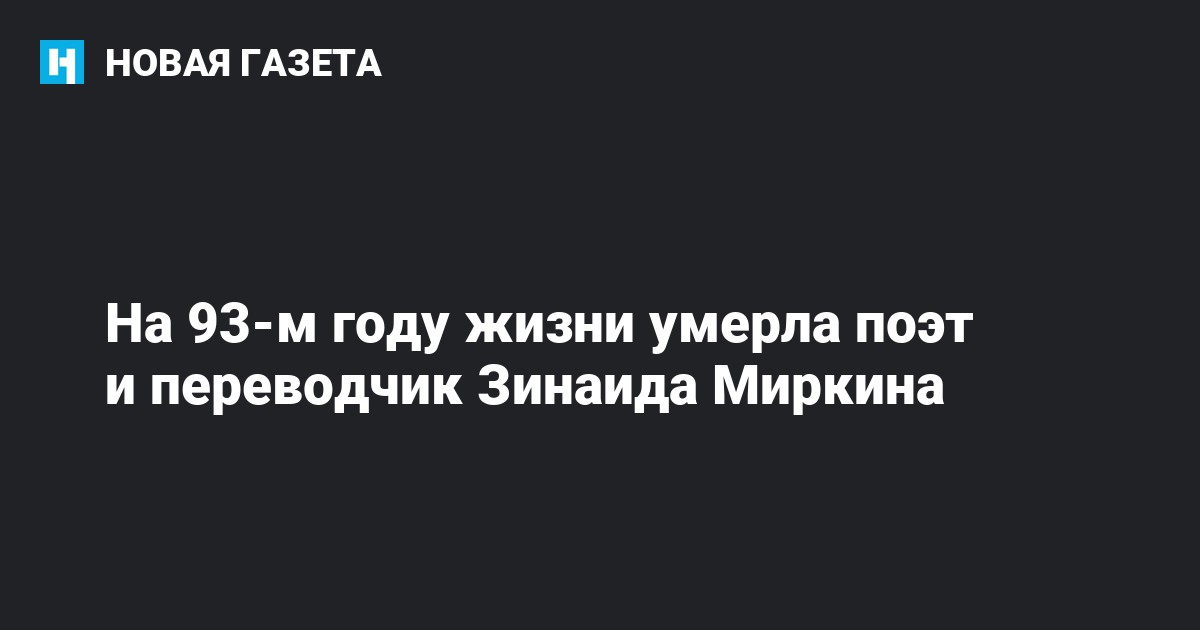 В Москве умерла поэт, переводчик и эссеист Зинаида Миркина. Об этом в фейсбуке сообщил священник Сергей Круглов.