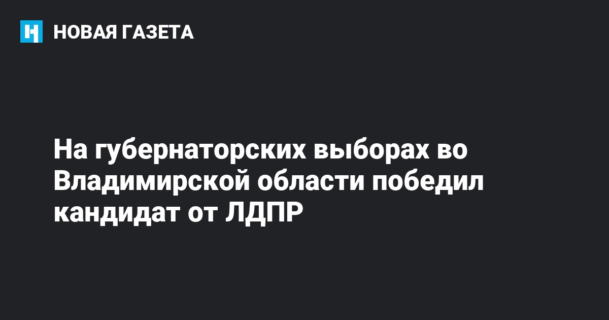 Во втором туре выборов губернатора Владимирской области победил кандидат от ЛДПР Владимир Сипягин, набрав, по данным ЦИК, более 57% голосов. За его конкурента, действующего губернатора региона Светлану Орлову проголосовали более 37% избирателей.