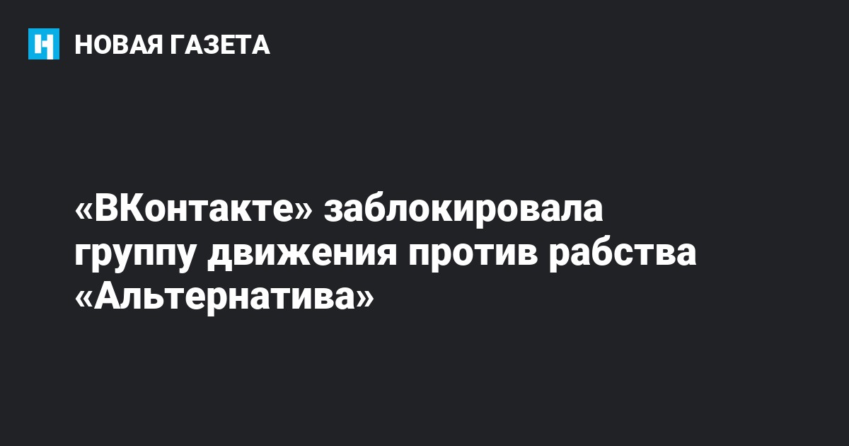 Администрация социальной сети «ВКонтакте» заблокировала сообщество «Альтернатива», которое занимается борьбой с торговлей людьми и рабством, из-за подозрительных сборов на благотворительные нужды.