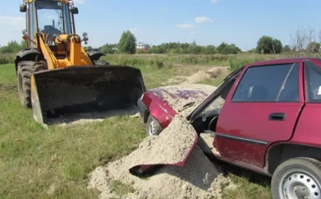 Мартынов вывалил песок на легковушку. Хрупкая «Дэу» Сухотерина сломалась пополам.