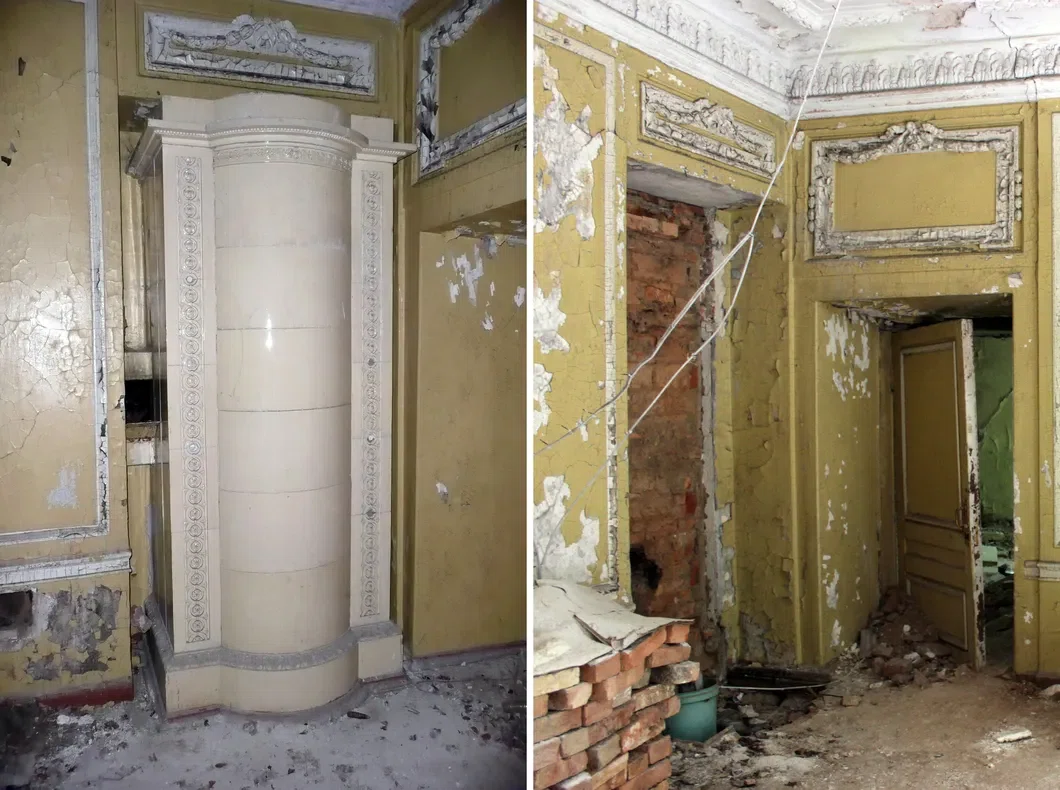 Роман Везенин после очередной съемки на даче рассказывал, что в одном из помещений «угловой камин разобран, изразцы лежат, сложенные аккуратной стопкой».