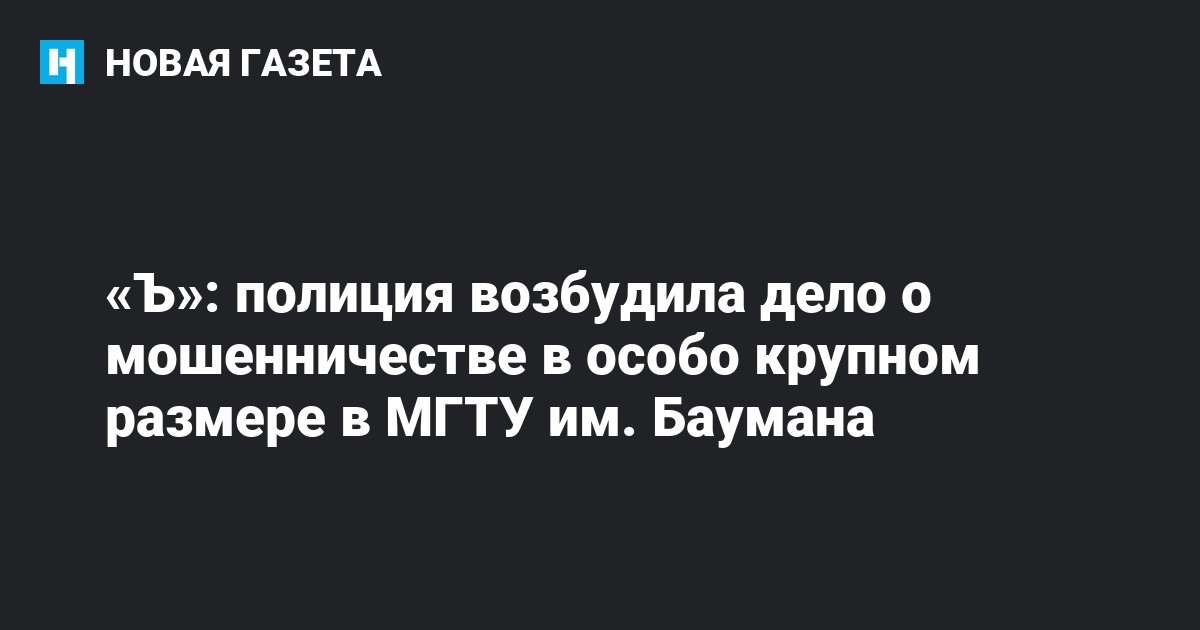 Полиция возбудила уголовное дело о мошенничестве в особо крупном размере (ч. 4 ст. 159 УК) в Московском государственном техническом университете (МГТУ) имени Н. Э. Баумана, сообщает «Коммерсант».
