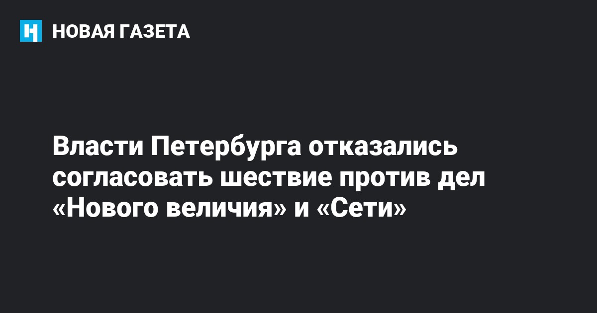 Администрация Петербурга отказалась согласовать шествие в поддержку фигурантов дел «Нового величия» и «Сети», запланированное на 28 октября. Об этом «Закс.ру» рассказал один из организаторов шествия Павел Чупрунов. Ранее в проведении демонстрации в тот же день в центре Москвы отказала и столичная мэрия.